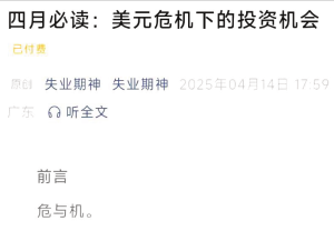 失业期神付费文4.14-四月必读:美元危机下的投资机会资源简介: 课程目录: 4.14失业期神付费文-四月必读:美元危机下的投资机会.pdf 隐藏内容 本内容需权限查看 购买查看权限 普通用户: 9.9智投币会员: 免费永久会员: 免费 如遇文章链接失效,请联系客服补新链!公众号:顶峰资源整合