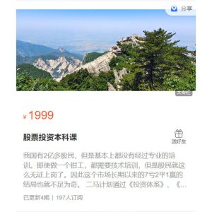 二马由之-股票投资本科课,投资体系估值体系价值投资资源简介: