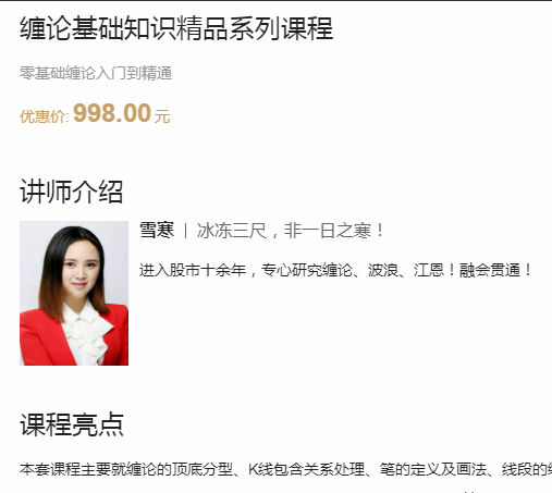 百股精】 雪寒缠论 缠论基础知识精品系列视频课程资源简介: