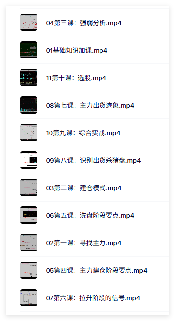 本课程,帮助所有的小白,从零基础,看懂主力,学会量价分析。集合我12年操盘经验,倾力打造,每节课都是视屏,好评如潮!
