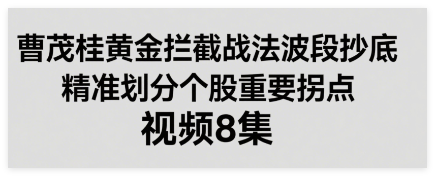 曹茂桂黄金拦截战法波段抄底 精准划分个股重要拐点 视频8集资源简介:
