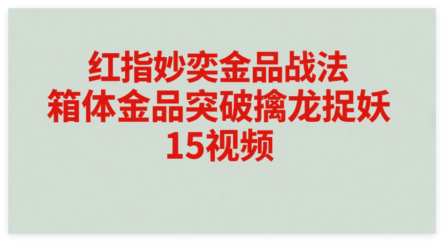 红指妙奕金品战法 箱体金品突破擒龙捉妖 15视频资源简介: