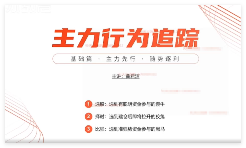 本课程是普通投资者建立主力思维和与强者为伍的第一课。作为市场的跟随者,我们能做的只有跟随主力、跟随趋势,所以只有建立和主力一样的思维方式才能看清市场的涨跌。