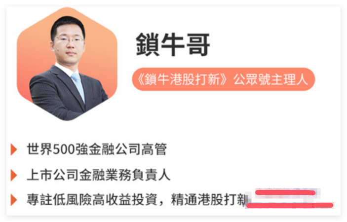 锁牛港股打新公众号主理人锁牛哥,专注低风险,高收益的投资方式。股海沉浮十多年,曾任世界500强的金融公司高管,上市公司金融业务负责人。