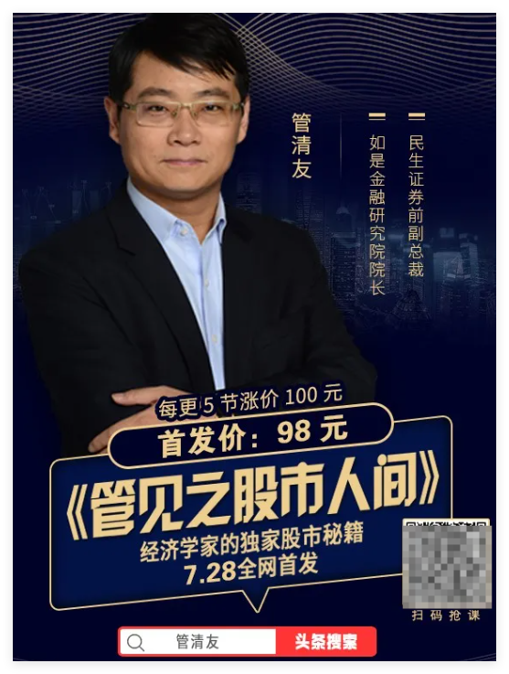 这门课管清友老师将会告诉大家股票市场的底层逻辑;告诉大家股票市场运行的基本特点,以及具备中国特色的那些特点;告诉大家那些行业内人士不会轻易对你讲、一般人我不告诉他的那些秘而不宣的知识,让大家对这个市场有一个通透的了解。那么这个时候,我觉得你才能真正做到知己知彼,百战不殆。