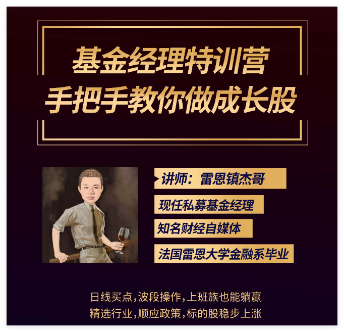 雷恩镇杰哥,现任私募基金经理,知名财经自媒体。连续7年稳定盈利的私募基金经理10多年实战总结,一套适合中国股市的、散户也可以盈利的交易方法,共9节,从选股方法到买卖点把握,一套让你笑傲市场的交易系统,尽在基金经理特训营。