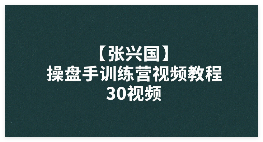 【张兴国】操盘手训练营视频教程 30视频课程目录: