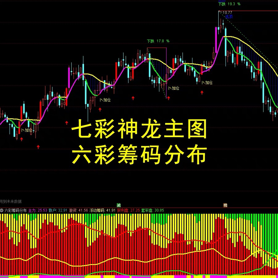 1981-七彩神龙+六彩筹码分布指标1主1副套装股票中线波段操作低吸战法