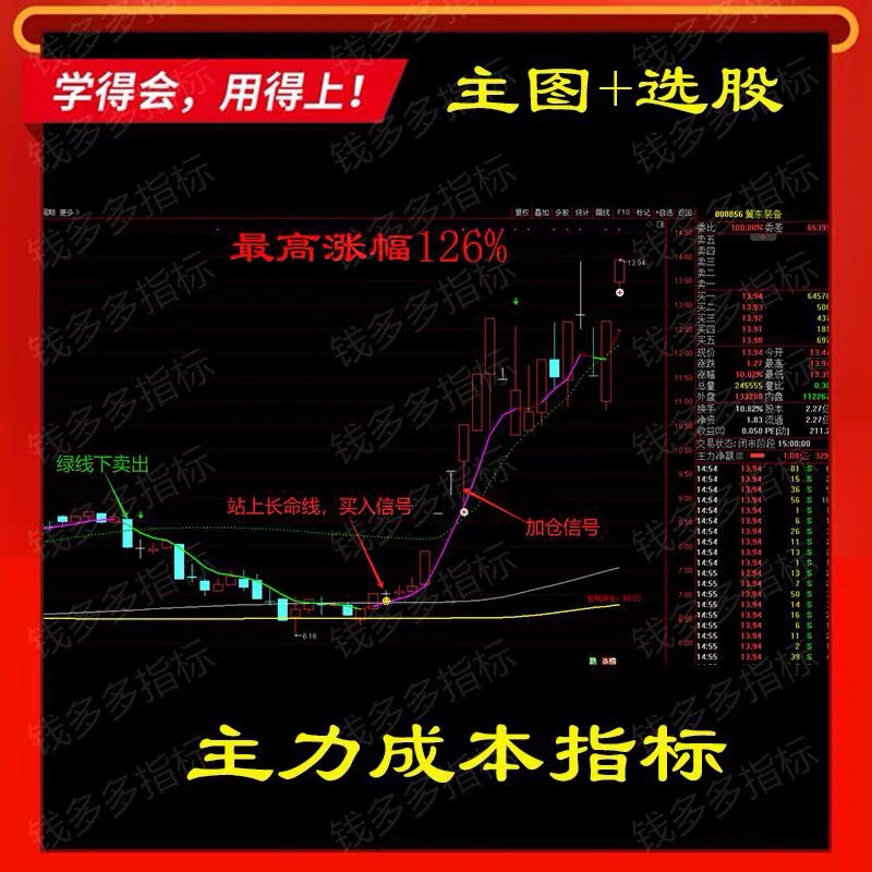 2013-通达信股票主图指标识别主力成本主力入场买入绿线下卖出带选股