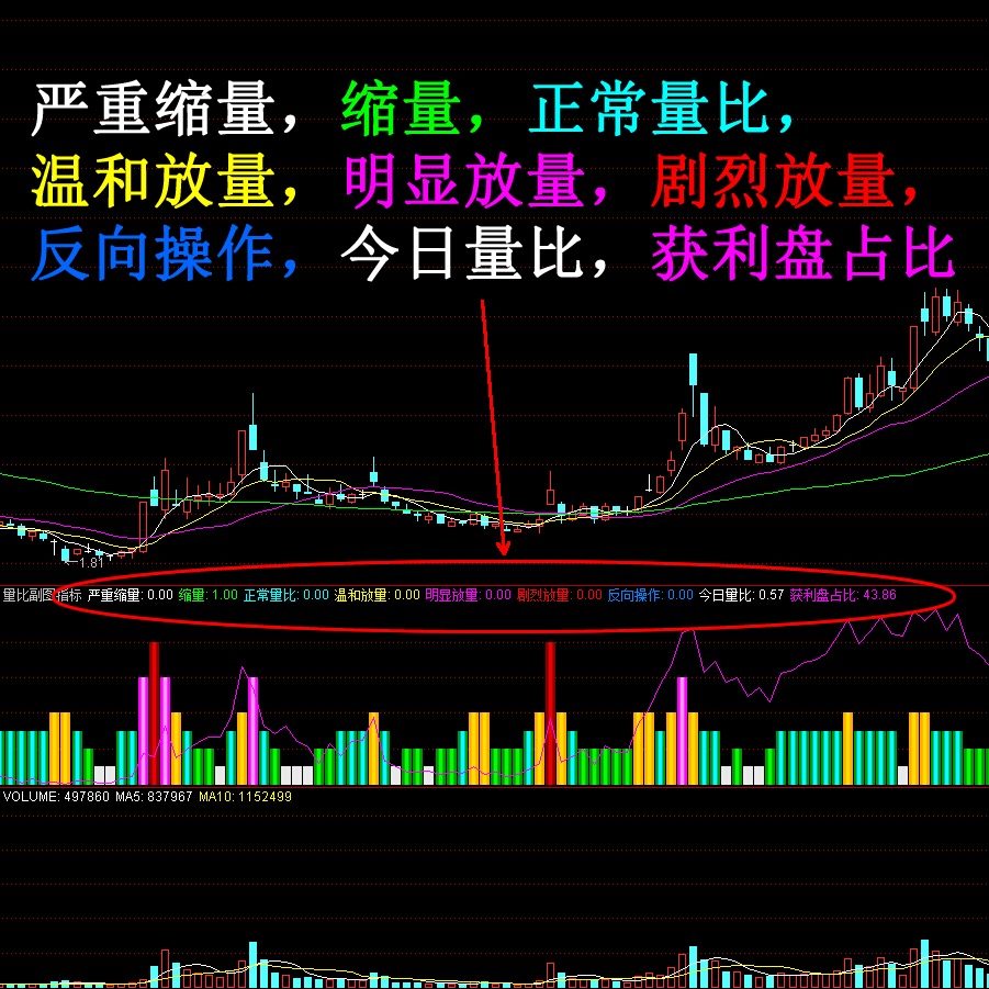 2063-量比副图指标缩量放量股票获利盘占比通达信炒股公式电脑手机通用