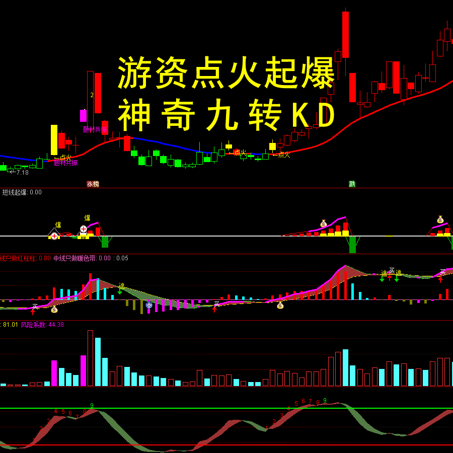 2064-游资点火起爆+神奇九转kdj套装炒股票通达信指标公式跟随主力资金