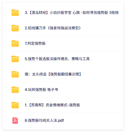 专做强势股-7套资料--13.5GB └─ ├─ 专做强势股 │ ├─ 1.【苏南帮】资金情绪模式-强势股 │ │ ├─ 10十、抓住硬核逻辑股.mp4 (242.9MB) │ │ ├─ 11十一、正T做法.mp4 (255.56MB) │ │ ├─ 12十二、抢先锋股.mp4 (206.33MB) │ │ ├─ 13十三、弱势抱团.mp4 (79.88MB) │ │ ├─ 14十四、资金异动.mp4 (216.01MB) │ │ ├─ 15十五、资金自救.mp4 (86.72MB) │ │ ├─ 16十六、炸板股再启动.mp4 (271.48MB) │ │ ├─ 17十七、盛转衰初期机会(中泰).mp4 (290.2MB) │ │ ├─ 18十八、下跌中继择股(云内).mp4 (278.93MB) │ │ ├─ 19十九、底部连阳(永艺).mp4 (172.79MB) │ │ ├─ 1一、快速搜索热门股.mp4 (101.39MB) │ │ ├─ 20二十、逆向思维(万向).mp4 (129.93MB) │ │ ├─ 21二十一、板块发酵(东吴).mp4 (75.88MB) │ │ ├─ 22二十二、板块中率先企稳(荃银).mp4 (109.65MB) │ │ ├─ 23二十三、挖掘补涨股(华昌达).mp4 (114.7MB) │ │ ├─ 24二十四、资金记忆(华灿聚灿).mp4 (91.28MB) │ │ ├─ 25二十五、题材预期 身位优势(怡达).mp4 (189.62MB) │ │ ├─ 26二十六、如何找强势补涨股(飞天).mp4 (147.52MB) │ │ ├─ 27二十七、多技术集合.mp4 (800.72MB) │ │ ├─ 28二十八、实战技术讲解.mp4 (402.56MB) │ │ ├─ 29二十九、找率先启动的股或跟风股.mp4 (402.56MB) │ │ ├─ 2二、高标强势判断.mp4 (96.02MB) │ │ ├─ 30三十、涨停股后期分歧机会.mp4 (269.29MB) │ │ ├─ 31题材预期 资金认可(旗天)-1.mp4 (137.77MB) │ │ ├─ 31题材周期(小市值往大市值转变)-2.mp4 (138.36MB) │ │ ├─ 32三十二、股性 筹码 异动,三点把握低位套利.mp4 (63.15MB) │ │ ├─ 33三十三、短线和中线的选股侧重点.mp4 (93.52MB) │ │ ├─ 34三十四、抓住高辨识度股的启动时机.mp4 (289.77MB) │ │ ├─ 35三十五、锂矿赛道选择+思维发散.mp4 (160.72MB) │ │ ├─ 36三十六、低吸之分时承接.mp4 (169.33MB) │ │ ├─ 37三十七、涨价择股.mp4 (154.61MB) │ │ ├─ 39.三十八、择股三部曲.mp4 (144.84MB) │ │ ├─ 3三、强股分歧买点1.mp4 (156.37MB) │ │ ├─ 40.三十九、高辨识度的股(唯一涨停).mp4 (141.93MB) │ │ ├─ 41.四十、热点题材分歧把握.mp4 (99.01MB) │ │ ├─ 42.四十一、唯一股如何选.mp4 (97.57MB) │ │ ├─ 43.四十二、热点题材的阶段顶.mp4 (68.47MB) │ │ ├─ 44.唯一低吸.mp4 (70.51MB) │ │ ├─ 4四、龙头首阴反包.mp4 (160.61MB) │ │ ├─ 5五、强股分歧买点2.mp4 (172.72MB) │ │ ├─ 6六、高标先手.mp4 (253.72MB) │ │ ├─ 7七、看高做低.mp4 (271.65MB) │ │ ├─ 8八、情绪判断.mp4 (290.79MB) │ │ ├─ 9九、平台突破.mp4 (238.82MB) │ ├─ 2.短线镰刀手《强者恒强战法模型》 │ │ ├─ 1.jpg (2.41MB) │ │ ├─ 2.jpg (2.51MB) │ │ ├─ 3.jpg (2.79MB) │ │ ├─ 4.jpg (2.49MB) │ │ ├─ 5穿250日线选股器.tn6 (6.3KB) │ │ ├─ 镰刀双金叉指标.tn6 (8.33KB) │ │ ├─ 强者恒强系列战法指标.tn6 (6.98KB) │ │ ├─ 强者恒强选股器.tn6 (6.48KB) │ ├─ 3.【澄泓财经】小白炒股学堂 心路 -如何寻找强势股 3视频 │ │ ├─ 第2讲:强势股的特征.mp4 (0B) │ │ ├─ 第3讲:怎样寻找强势股.mp4 (36.46MB) │ ├─ 4.玩转强势股 电子书 │ │ ├─ 1.jpg (215.93KB) │ │ ├─ 10.jpg (254.26KB) │ │ ├─ 11.jpg (218.6KB) │ │ ├─ 12.jpg (282.6KB) │ │ ├─ 13.jpg (144.7KB) │ │ ├─ 14.jpg (181.69KB) │ │ ├─ 15.jpg (215.29KB) │ │ ├─ 16.jpg (258.49KB) │ │ ├─ 17.jpg (255.69KB) │ │ ├─ 18.jpg (223.59KB) │ │ ├─ 19.jpg (259.96KB) │ │ ├─ 2.jpg (183.26KB) │ │ ├─ 20.jpg (267.3KB) │ │ ├─ 21.jpg (262.7KB) │ │ ├─ 22.jpg (262.31KB) │ │ ├─ 23.jpg (251.09KB) │ │ ├─ 24.jpg (256.41KB) │ │ ├─ 25.jpg (262.36KB) │ │ ├─ 26.jpg (257.39KB) │ │ ├─ 27.jpg (224.39KB) │ │ ├─ 28.jpg (267.65KB) │ │ ├─ 29.jpg (264.76KB) │ │ ├─ 3.jpg (270.36KB) │ │ ├─ 30.jpg (253.78KB) │ │ ├─ 31.jpg (251.62KB) │ │ ├─ 32.jpg (286.88KB) │ │ ├─ 33.jpg (239.68KB) │ │ ├─ 34.jpg (293.99KB) │ │ ├─ 35.jpg (277.9KB) │ │ ├─ 36.jpg (254.85KB) │ │ ├─ 37.jpg (281.35KB) │ │ ├─ 38.jpg (249.29KB) │ │ ├─ 39.jpg (257.09KB) │ │ ├─ 4.jpg (228KB) │ │ ├─ 40.jpg (267.54KB) │ │ ├─ 41.jpg (289.56KB) │ │ ├─ 42.jpg (270.22KB) │ │ ├─ 43.jpg (230.71KB) │ │ ├─ 44.jpg (284.17KB) │ │ ├─ 45.jpg (298.9KB) │ │ ├─ 46.jpg (278.85KB) │ │ ├─ 47.jpg (305.87KB) │ │ ├─ 48.jpg (87.38KB) │ │ ├─ 49.jpg (250.98KB) │ │ ├─ 5.jpg (256.58KB) │ │ ├─ 50.jpg (262.65KB) │ │ ├─ 51.jpg (286.38KB) │ │ ├─ 52.jpg (240.38KB) │ │ ├─ 53.jpg (227.54KB) │ │ ├─ 6.jpg (219.59KB) │ │ ├─ 7.jpg (241.28KB) │ │ ├─ 8.jpg (273.81KB) │ │ ├─ 9.jpg (213.2KB) │ ├─ 5.强势个股选股法操作理念、策略与工具 │ │ ├─ (技术篇)强势个股选股法操作理念、策略与工具(上).mp4 (1010.24MB) │ │ ├─ (技术篇)强势个股选股法操作理念、策略与工具(下).mp4 (101.86MB) │ ├─ 7.判定强势股 │ │ ├─ 0201-判定强势股.mp4 (258.94MB) │ │ ├─ 0202-判定强势股.avi (112MB) │ │ ├─ 0203-判定强势股.avi (145.88MB) │ ├─ 赠:龙头缔造【强势股翻倍集训营】 │ │ ├─ 01涨停板与情绪概论.mp4 (245.63MB) │ │ ├─ 02第一期作业.png (142.48KB) │ │ ├─ 03分时形态.mp4 (271.79MB) │ │ ├─ 04盘面分析及作业2.mp4 (131.63MB) │ │ ├─ 